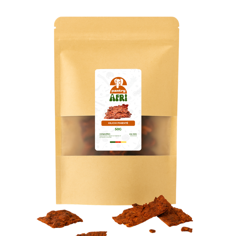 Le Kilichi pimenté AfriPantry est une pure merveille de la gastronomie sahélienne. Originaire du Niger, du Nord du Nigéria, du Mali ou encore du Cameroun, le kilichi est une viande séchée traditionnelle, souvent comparée au biltong ou au jerky, mais avec une identité bien à lui : plus fine, plus intense, et souvent épicée à souhait.